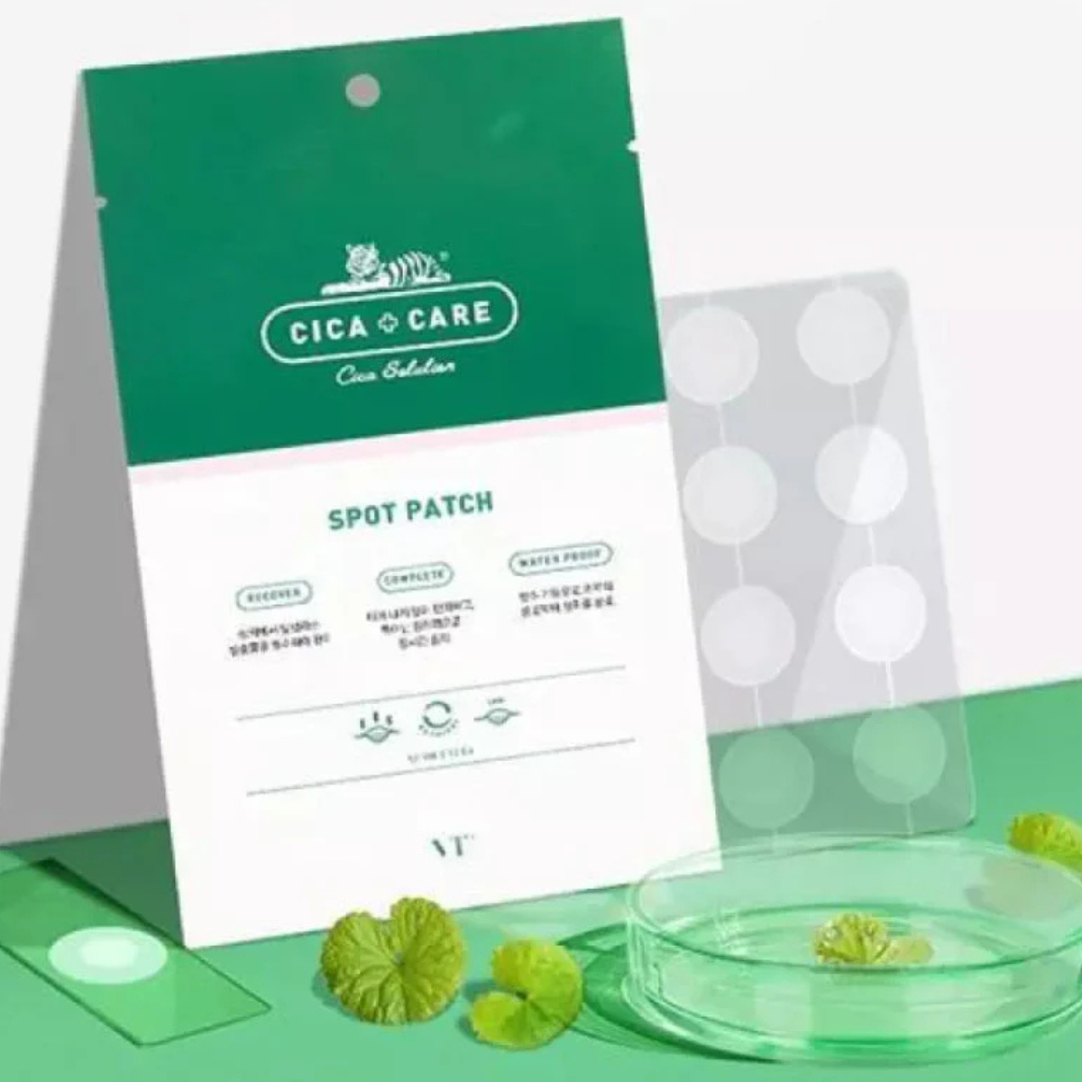 High-level description: A hydrocolloid-based spot patch that absorbs excess fluid, protects irritated areas from touching or contamination and helps blemishes heal in a clean, sealed environment.