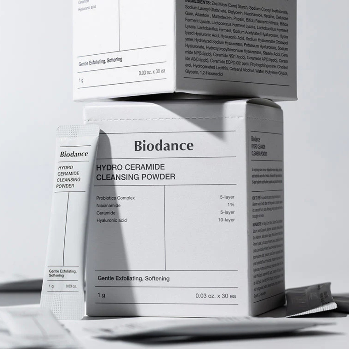 Zea Mays Starch, Sodium Cocoyl Isethionate, Sodium Lauroyl Glutamate, Diglycerin, Niacinamide, Betaine, Cellulose Gum, Allantoin, Maltodextrin, Papain, Bifida Ferment Filtrate, Bifida Ferment Lysate, Lactococcus Ferment Lysate, Lactobacillus Ferment Lysate, Lactobacillus Ferment, Sodium Acetylated Hyaluronate, Hydrolyzed Hyaluronic Acid, Hyaluronic Acid, Sodium Hyaluronate Crosspolymer, Hydrolyzed Sodium Hyaluronate, Potassium Hyaluronate, Sodium Hyaluronate, Hydroxypropyltrimonium Hyaluronate, Stearic Acid, Ceramide NP, Ceramide NS, Ceramide AP, Ceramide AS, Ceramide EOP, Phytosphingosine, Cholesterol, Hydrogenated Lecithin, Cetearyl Alcohol, Water, Butylene Glycol, Glycerin, 1,2-Hexanediol.
